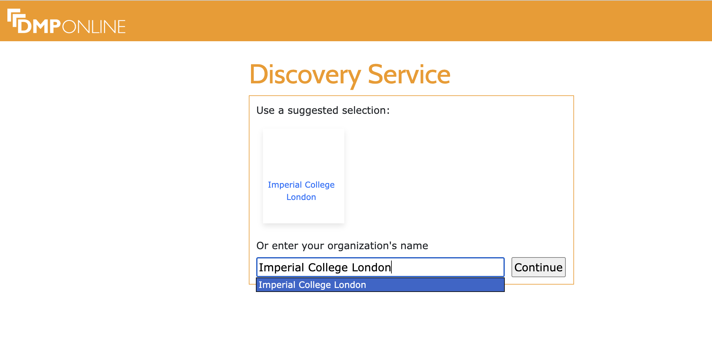 - Go to DMPOnline and select “Sign in with your institutional credentials”