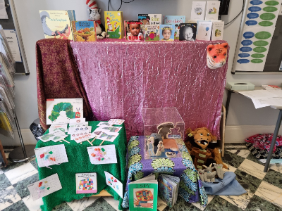 The nursery’s entrance was decorated with lots of books as well as displays created by the children. This included Elmer the Elephant, Rainbow fish and The Snail and the whale to name a few.