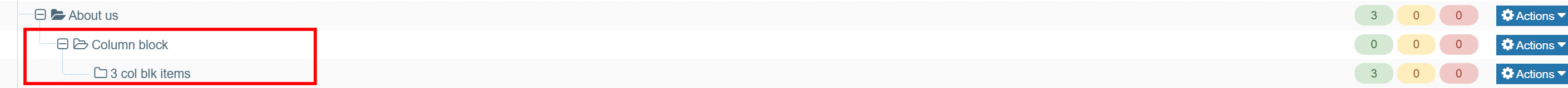 1. Create a hidden sub-section (sub-page) of the section where the 3 Column block will live. This folder must be called 'Column block' (case sensitive).