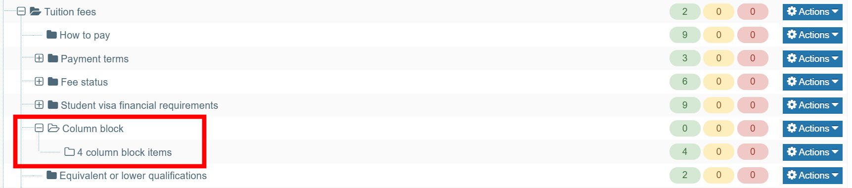 1. Create a hidden sub-section (sub-page) of the section where the 4 Column block will live. This folder must be called 'Column block' (case sensitive).
