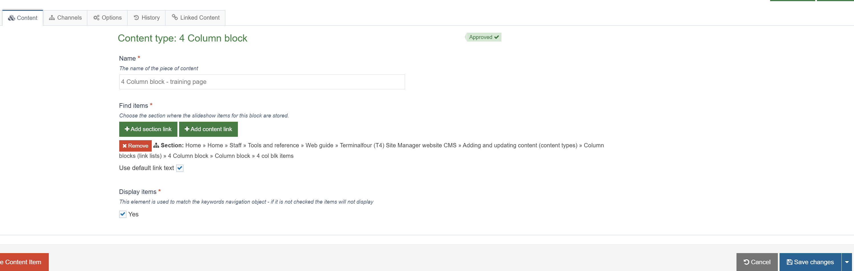 | Title Link Internal | Click Add section link if you want the column title to link to another T4 web page | No |