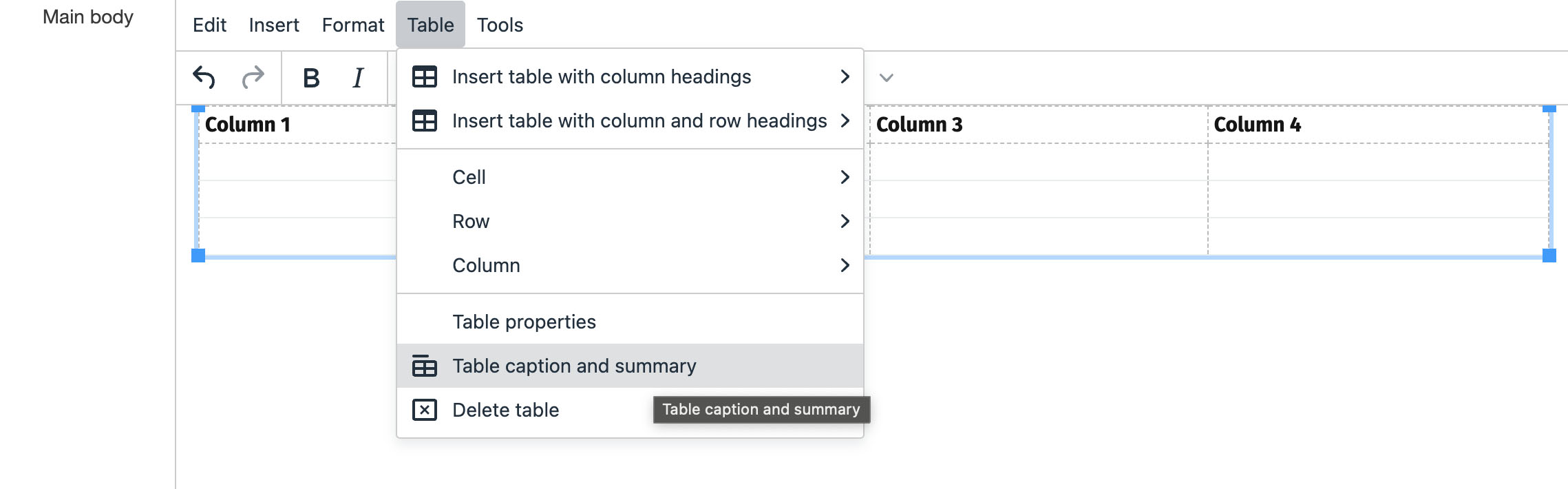 - Table caption and summary - To make your table more accssible to screen readers (see instructions below)
