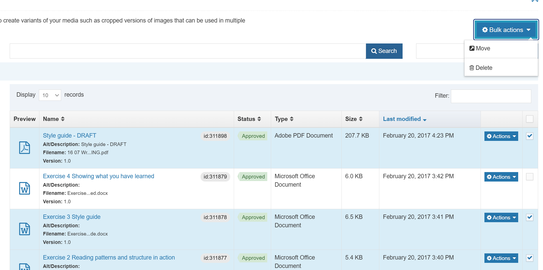 1. Locate the files in the Media Library (see steps 1 to 4 in the instructions for updating a file above).