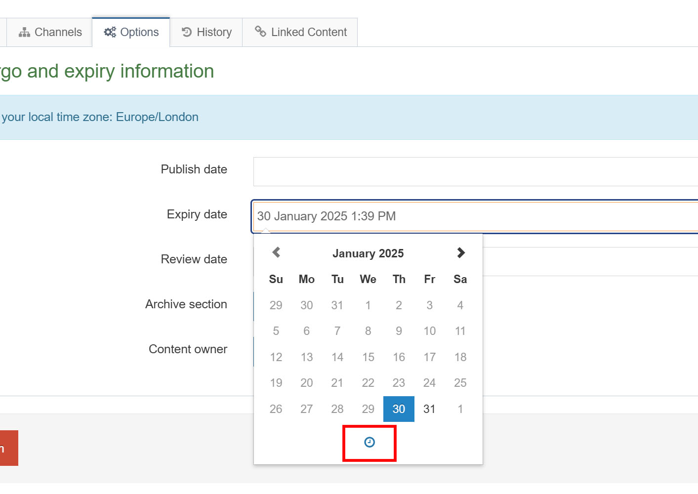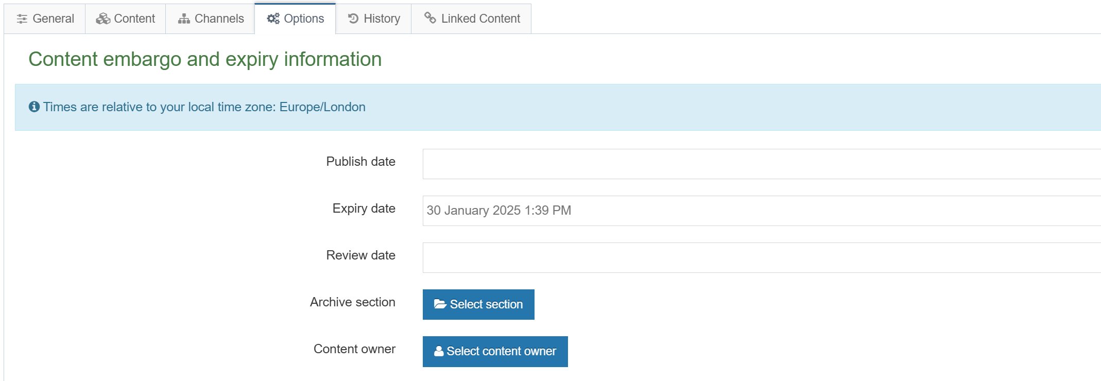 3. Click Save and approve. This will clear the expiry and the content will reappear when the section (page) is next published.