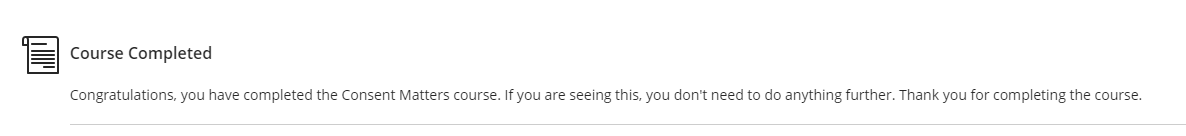 You will know you have completed the course when you can see the 'Course Completed' notification at the end of the course content list - it will look like below.